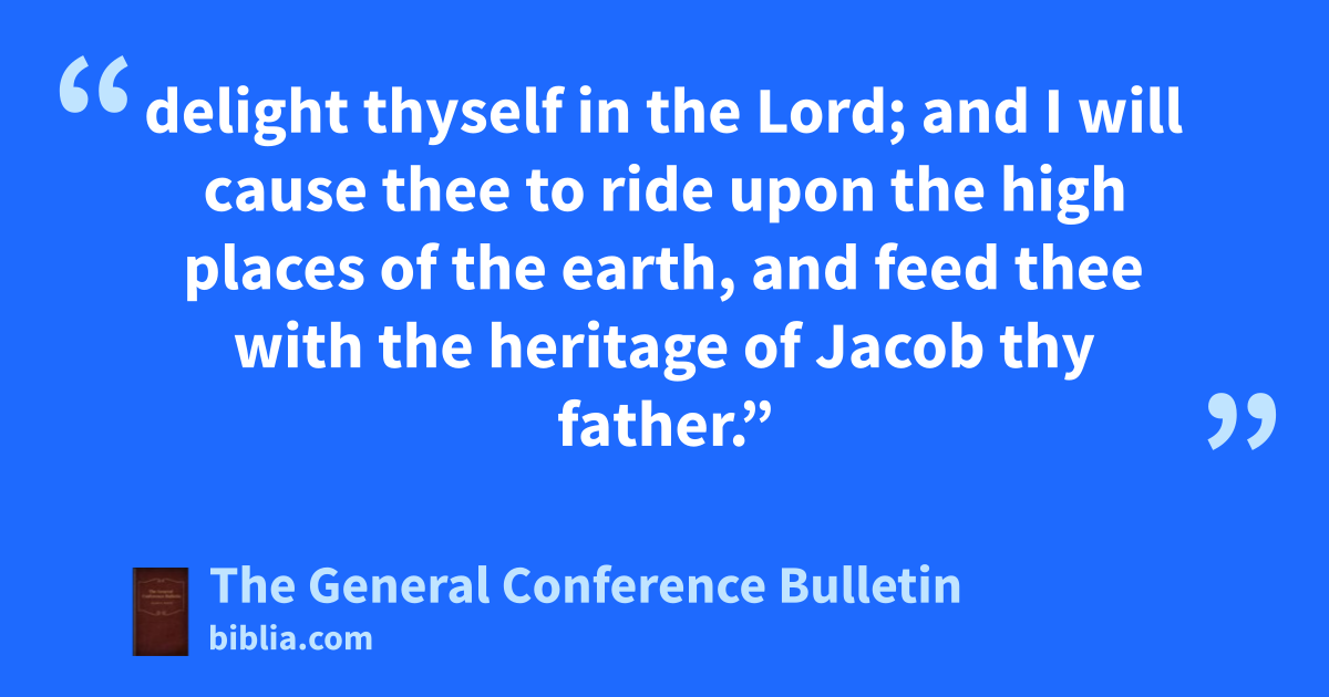 delight thyself in the Lord; and I will cause thee to ride upon the high places of the earth, and feed thee with the heritage of Jacob thy father.”