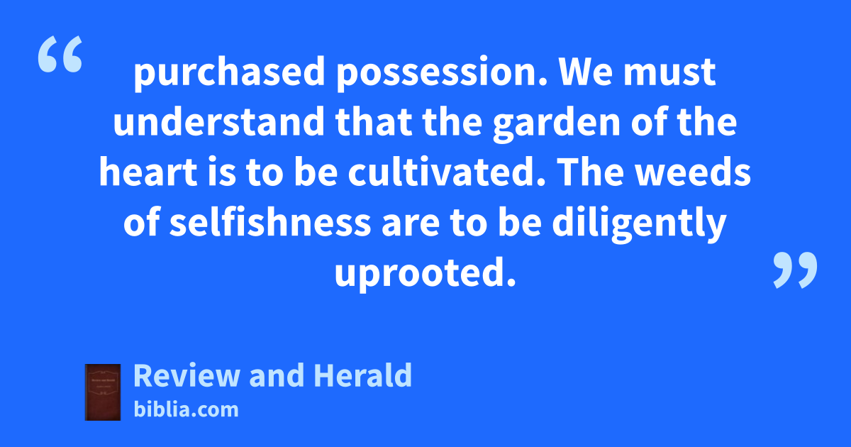 purchased possession. We must understand that the garden of the heart is to be cultivated. The weeds of selfishness are to be diligently uprooted.