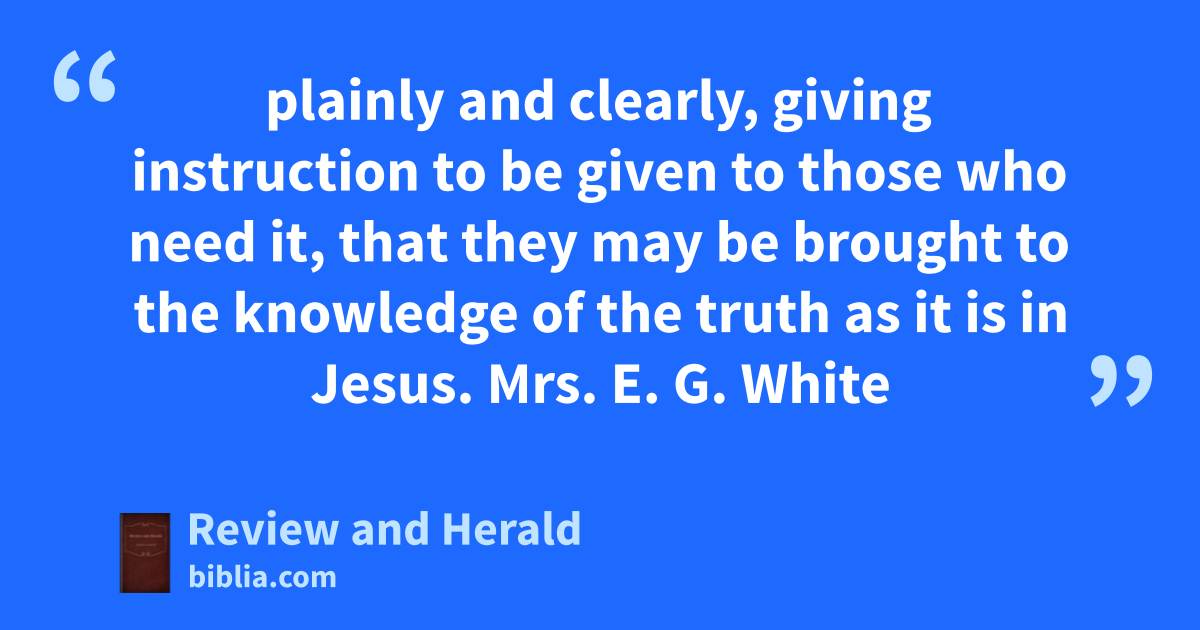 plainly and clearly, giving instruction to be given to those who need it, that they may be brought to the knowledge of the truth as it is in Jesus. Mrs. E. G. White