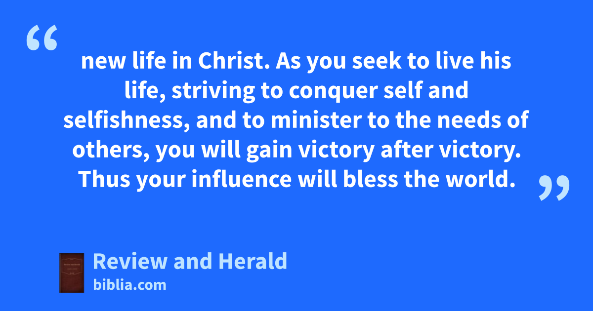 new life in Christ. As you seek to live his life, striving to conquer self and selfishness, and to minister to the needs of others, you will gain victory after victory. Thus your influence will bless the world.