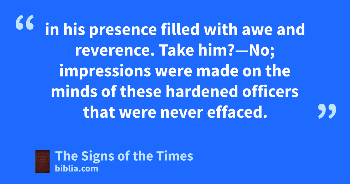 in his presence filled with awe and reverence. Take him?—No; impressions were made on the minds of these hardened officers that were never effaced.