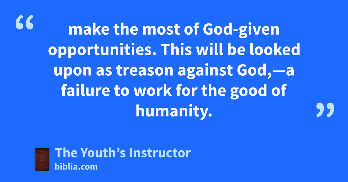 make the most of God-given opportunities. This will be looked upon as treason against God,—a failure to work for the good of humanity.
