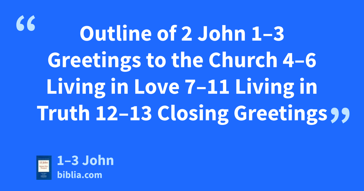 Outline of 2 John 1–3 Greetings to the Church 4–6 Living in Love 7–11 Living in Truth 12–13 Closing Greetings