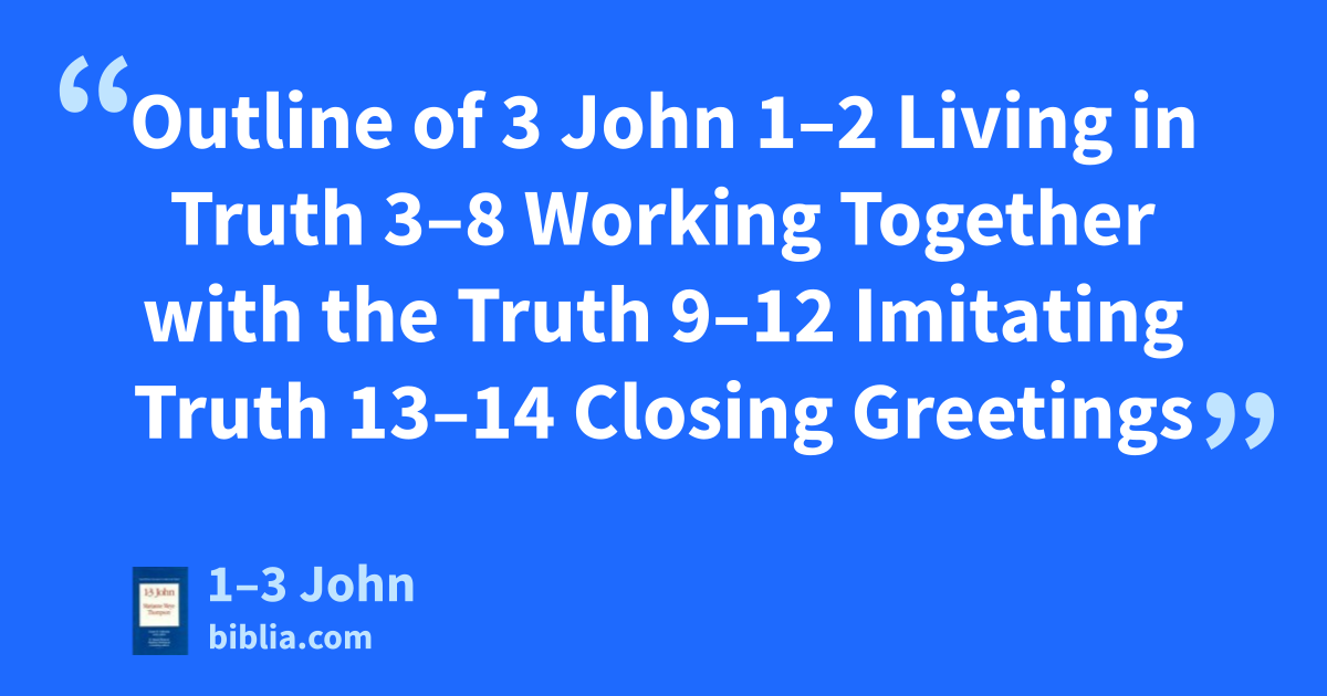 Outline of 3 John 1–2 Living in Truth 3–8 Working Together with the Truth 9–12 Imitating Truth 13–14 Closing Greetings