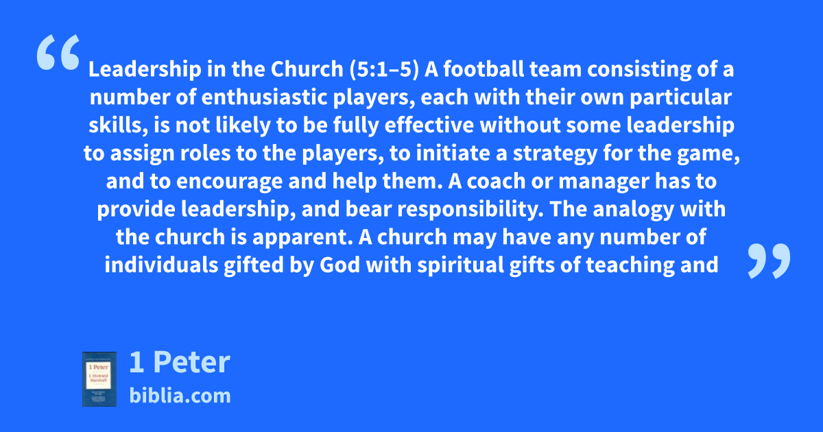 Leadership in the Church (5:1–5) A football team consisting of a number of enthusiastic players, each with their own particular skills, is not likely to be fully effective without some leadership to assign roles to the players, to initiate a strategy for the game, and to encourage and help them. A coach or manager has to provide leadership, and bear responsibility. The analogy with the church is apparent. A church may have any number of individuals gifted by God with spiritual gifts of teaching and