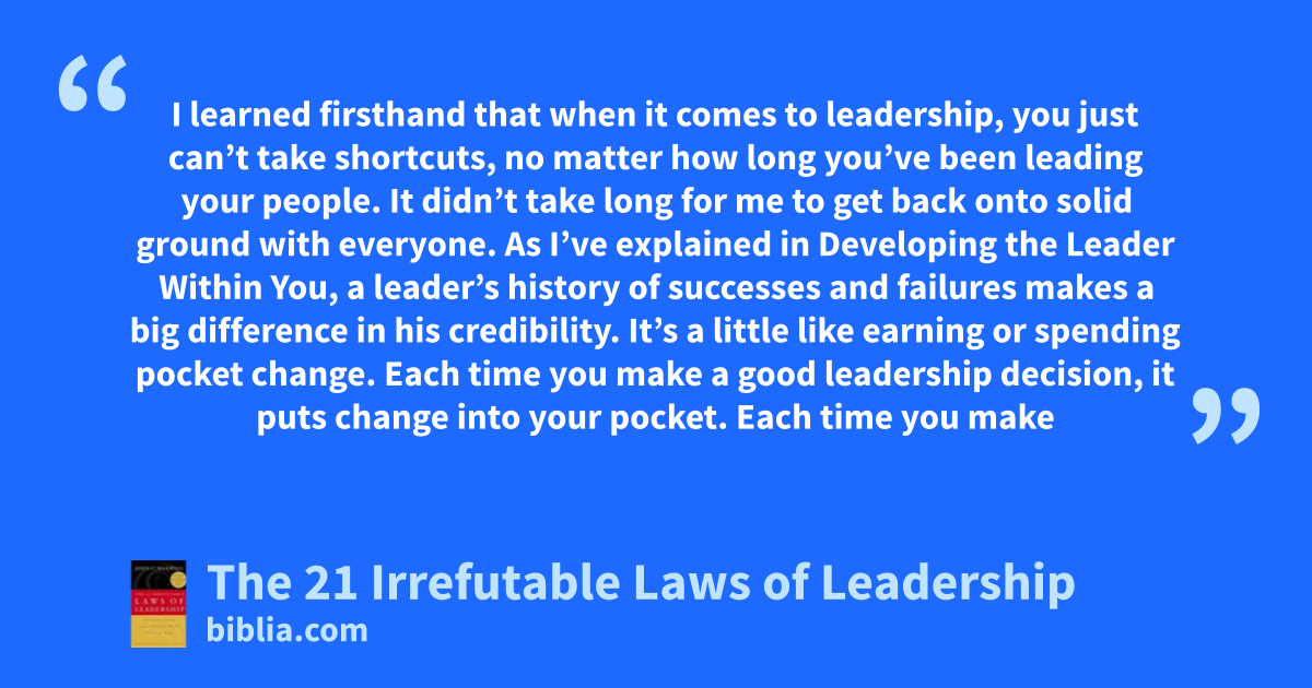 What would happen if a top expert with more than thirty years of leadership experience were willing to distill everything he had learned about leadership into a handful of life-changing principles just for you? It would change your life. John C. Maxwell has done exactly that in The 21 Irrefutable Laws of Leadership. He has combined insights learned from his thirty-plus years of leadership...