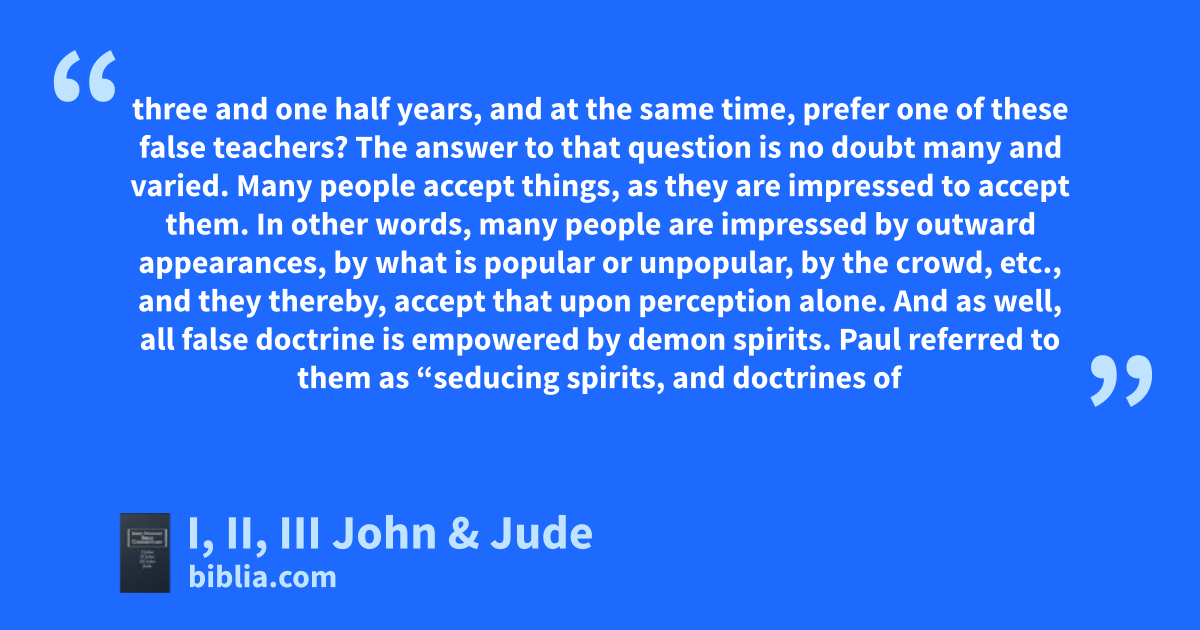 three and one half years, and at the same time, prefer one of these false teachers? The answer to that question is no doubt many and varied. Many people accept things, as they are impressed to accept them. In other words, many people are impressed by outward appearances, by what is popular or unpopular, by the crowd, etc., and they thereby, accept that upon perception alone. And as well, all false doctrine is empowered by demon spirits. Paul referred to them as “seducing spirits, and doctrines of