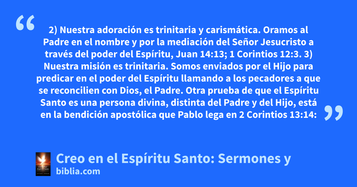 “Creo en el Espíritu Santo”, no como fuerza activa o emanación ignota, sino como la amorosa persona divina que ama, guía y enseña. “Creo en el Espíritu Santo” como parte indispensable de la iglesia de hoy. No es con programa ni con recursos modernos, sino con el poder antiguo del Espíritu eterno que las puertas del infierno no prevalecerán contra la iglesia. Si quieres vivir de forma abundante,...