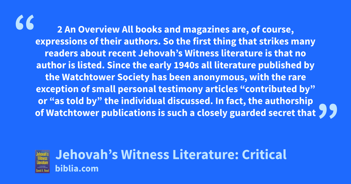 Jehovah's Witness Literature: A Critical Guide to Watchtower Publications is an up-to-date review of more than 100 years of writings. Arranged chronologically, the book is divided into four main eras: the Russell era from 1879 to 1916, the Rutherford era from 1917 to 1942, the Knorr era from 1942 to 1977 and the Franz era from 1977 to 1992. Reed discusses the books, periodicals, booklets, tracts...
