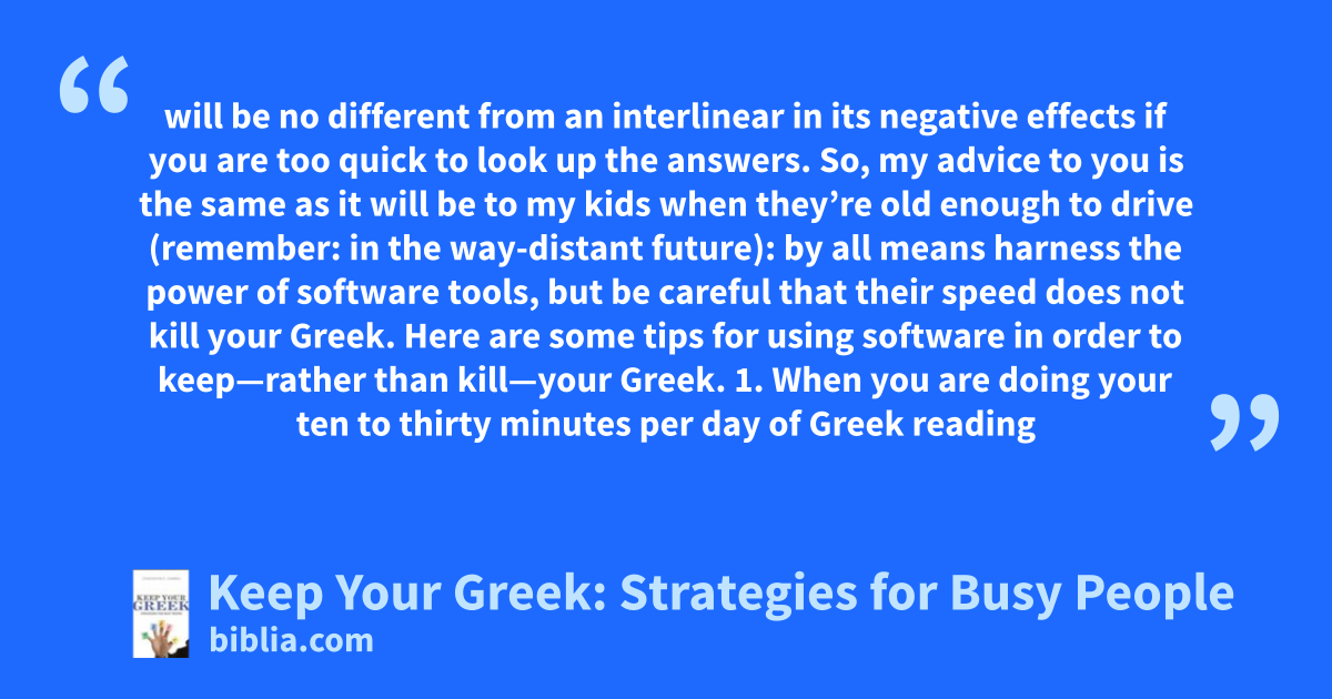 Seminarians spend countless hours mastering biblical languages and learning how the knowledge of them illuminates the reading, understanding, and application of Scripture. But while excellent language acquisition resources abound, few really teach students how to maintain their use of Greek for the long term. Consequently, pastors and other former Greek students find that under the pressures of...