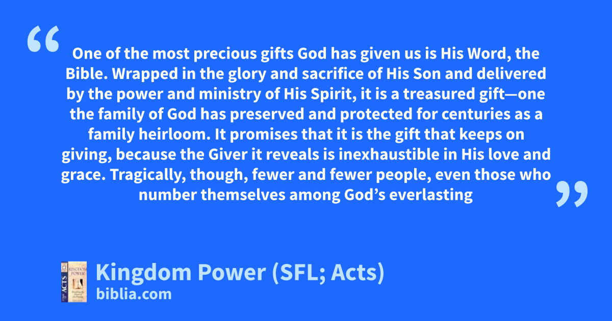 One of the most precious gifts God has given us is His Word, the Bible. Wrapped in the glory and sacrifice of His Son and delivered by the power and ministry of His Spirit, it is a treasured gift—one the family of God has preserved and protected for centuries as a family heirloom. It promises that it is the gift that keeps on giving, because the Giver it reveals is inexhaustible in His love and grace. Tragically, though, fewer and fewer people, even those who number themselves among God’s everlasting