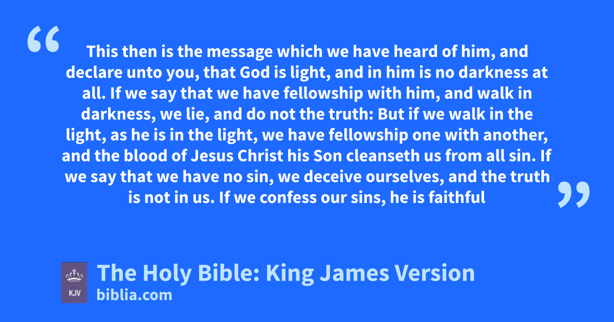 5 This then is the message which we have heard of him, and declare unto you, that God is light, and in him is no darkness at all. 6 If we say that we have fellowship with him, and walk in darkness, we lie, and do not the truth: 7 But if we walk in the light, as he is in the light, we have fellowship one with another, and the blood of Jesus Christ his Son cleanseth us from all sin.