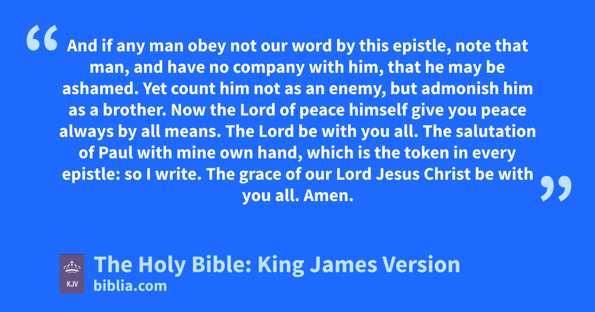 16 Now the Lord of peace himself give you peace always by all means. The Lord be with you all. 17 The salutation of Paul with mine own hand, which is the token in every epistle: so I write. 18 The grace of our Lord Jesus Christ be with you all. Amen.