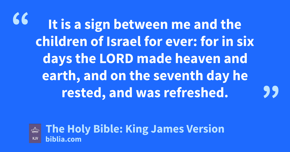 12 And the LORD spake unto Moses, saying, 13 Speak thou also unto the children of Israel, saying, Verily my sabbaths ye shall keep: for it is a sign between me and you throughout your generations; that ye may know that I am the LORD that doth sanctify you. 14 Ye shall keep the sabbath therefore; for it is holy unto you: every one that defileth it shall surely be put to death: for whosoever doeth any work therein, that soul shall be cut off from among his people. 15 Six days may work be done; but in the seventh is the sabbath of rest, holyd to the LORD: whosoever doeth any work in the sabbath day, he shall surely be put to death. 16 Wherefore the children of Israel shall keep the sabbath, to observe the sabbath throughout their generations, for a perpetual covenant. 17 It is a sign between me and the children of Israel for ever: for in six days the LORD made heaven and earth, and on the seventh day he rested, and was refreshed. 18 And he gave unto Moses, when he had made an end of communing with him upon mount Sinai, two tables of testimony, tables of stone, written with the finger of God.