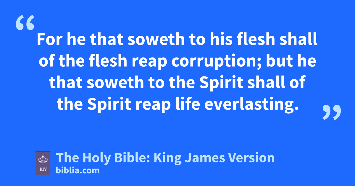 1 Brethren, if a man be overtaken in a fault, ye which are spiritual, restore such an one in the spirit of meekness; considering thyself, lest thou also be tempted. 2 Bear ye one another’s burdens, and so fulfil the law of Christ. 3 For if a man think himself to be something, when he is nothing, he deceiveth himself. 4 But let every man prove his own work, and then shall he have rejoicing in himself alone, and not in another. 5 For every man shall bear his own burden. 6 Let him that is taught in the word communicate unto him that teacheth in all good things. 7 Be not deceived; God is not mocked: for whatsoever a man soweth, that shall he also reap. 8 For he that soweth to his flesh shall of the flesh reap corruption; but he that soweth to the Spirit shall of the Spirit reap life everlasting. 9 And let us not be weary in well doing: for in due season we shall reap, if we faint not. 10 As we have therefore opportunity, let us do good unto all men, especially unto them who are of the household of faith.