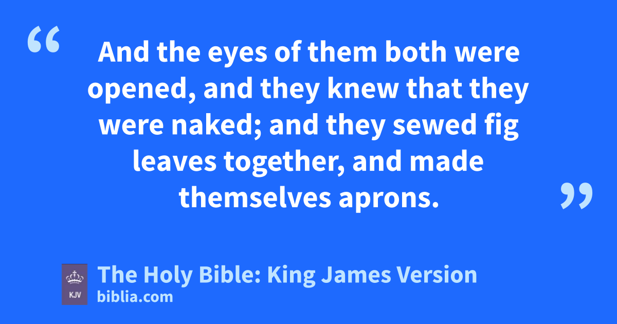 6 And when the woman saw that the tree was good for food, and that it was pleasantb to the eyes, and a tree to be desired to make one wise, she took of the fruit thereof, and did eat, and gave also unto her husband with her; and he did eat. 7 And the eyes of them both were opened, and they knew that they were naked; and they sewed fig leaves together, and made themselves apronsc. 8 And they heard the voice of the LORD God walking in the garden in the coold of the day: and Adam and his wife hid themselves from the presence of the LORD God amongst the trees of the garden.