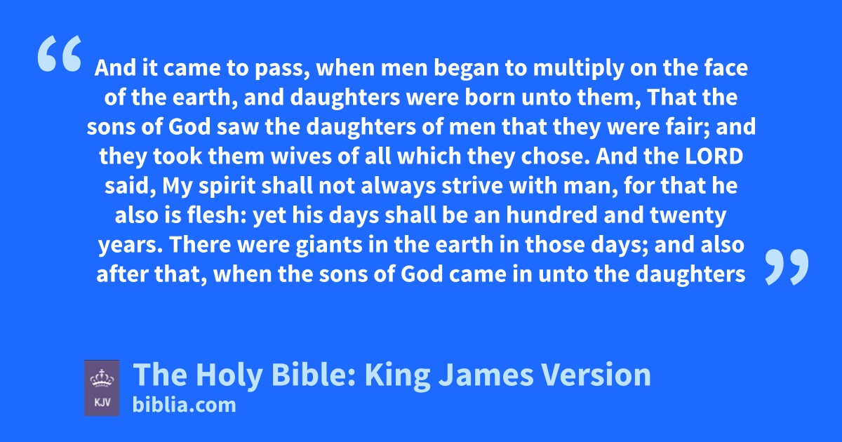 1 And it came to pass, when men began to multiply on the face of the earth, and daughters were born unto them, 2 That the sons of God saw the daughters of men that they were fair; and they took them wives of all which they chose.