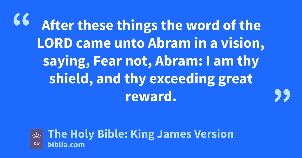 1 After these things the word of the LORD came unto Abram in a vision, saying, Fear not, Abram: I am thy shield, and thy exceeding great reward.