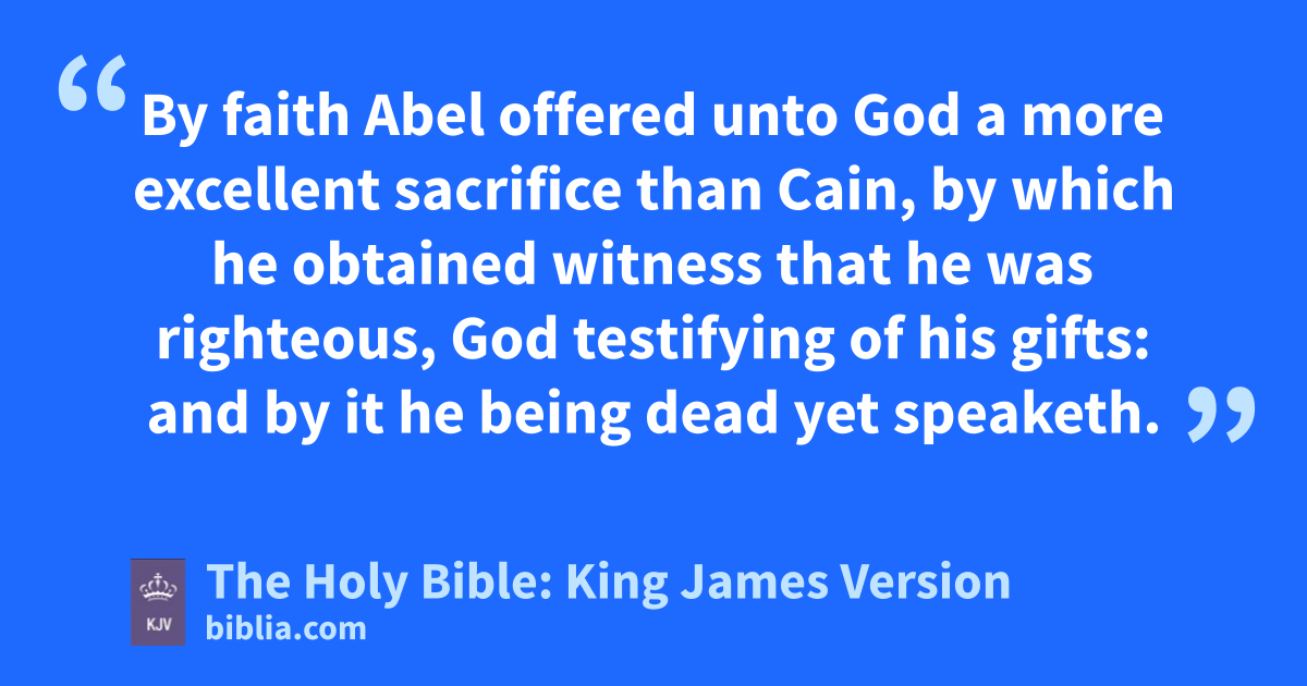 4 By faith Abel offered unto God a more excellent sacrifice than Cain, by which he obtained witness that he was righteous, God testifying of his gifts: and by it he being dead yetb speaketh. 5 By faith Enoch was translated that he should not see death; and was not found, because God had translated him: for before his translation he had this testimony, that he pleased God. 6 But without faith it is impossible to please him: for he that cometh to God must believe that he is, and that he is a rewarder of them that diligently seek him. 7 By faith Noah, being warned of God of things not seen as yet, moved with fear, prepared an ark to the saving of his house; by the which he condemned the world, and became heir of the righteousness which is by faith. 8 By faith Abraham, when he was called to go out into a place which he should after receive for an inheritance, obeyed; and he went out, not knowing whither he went. 9 By faith he sojourned in the land of promise, as in a strange country, dwelling in tabernacles with Isaac and Jacob, the heirs with him of the same promise: 10 For he looked for a city which hath foundations, whose builder and maker is God. 11 Through faith also Sara herself received strength to conceive seed, and was delivered of a child when she was past age, because she judged him faithful who had promised. 12 Therefore sprang there even of one, and him as good as dead, so many as the stars of the sky in multitude, and as the sand which is by the sea shore innumerable. 13 These all died in faithc, not having received the promises, but having seen them afar off, and were persuaded of them, and embraced them, and confessed that they were strangers and pilgrims on the earth. 14 For they that say such things declare plainly that they seek a country. 15 And truly, if they had been mindful of that country from whence they came out, they might have had opportunity to have returned. 16 But now they desire a better country, that is, an heavenly: wherefore God is not ashamed to be called their God: for he hath prepared for them a city. 17 By faith Abraham, when he was tried, offered up Isaac: and he that had received the promises offered up his only begotten son, 18 Of whom it was said, That in Isaac shall thy seed be called: 19 Accounting that God was able to raise him up, even from the dead; from whence also he received him in a figure. 20 By faith Isaac blessed Jacob and Esau concerning things to come. 21 By faith Jacob, when he was a dying, blessed both the sons of Joseph; and worshipped, leaning upon the top of his staff. 22 By faith Joseph, when he died, made mention of the departing of the children of Israel; and gave commandment concerning his bones. 23 By faith Moses, when he was born, was hid three months of his parents, because they saw he was a proper child; and they were not afraid of the king’s commandment. 24 By faith Moses, when he was come to years, refused to be called the son of Pharaoh’s daughter; 25 Choosing rather to suffer affliction with the people of God, than to enjoy the pleasures of sin for a season; 26 Esteeming the reproach of Christd greater riches than the treasures in Egypt: for he had respect unto the recompence of the reward. 27 By faith he forsook Egypt, not fearing the wrath of the king: for he endured, as seeing him who is invisible. 28 Through faith he kept the passover, and the sprinkling of blood, lest he that destroyed the firstborn should touch them. 29 By faith they passed through the Red sea as by dry land: which the Egyptians assaying to do were drowned. 30 By faith the walls of Jericho fell down, after they were compassed about seven days. 31 By faith the harlot Rahab perished not with them that believed not, when she had received the spies with peace.