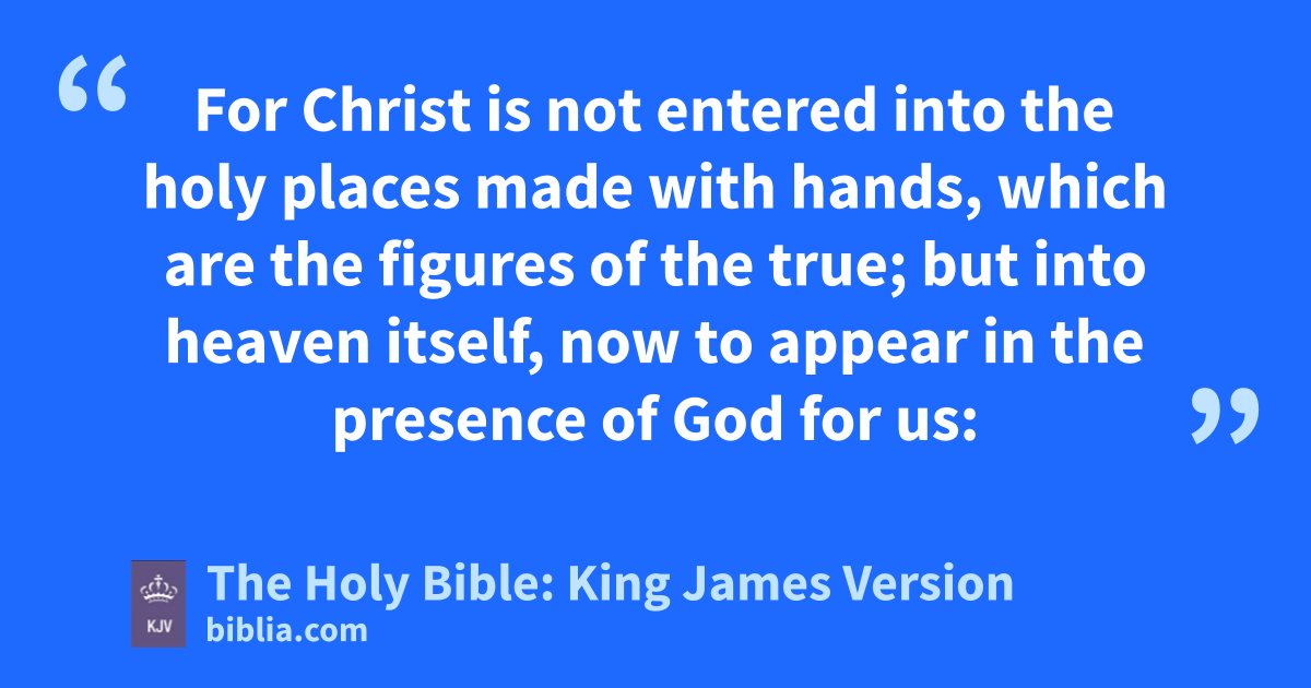 23 It was therefore necessary that the patterns of things in the heavens should be purified with these; but the heavenly things themselves with better sacrifices than these. 24 For Christ is not entered into the holy places made with hands, which are the figures of the true; but into heaven itself, now to appear in the presence of God for us: 25 Nor yet that he should offer himself often, as the high priest entereth into the holy place every year with blood of others; 26 For then must he often have suffered since the foundation of the world: but now once in the end of the world hath he appeared to put away sin by the sacrifice of himself. 27 And as it is appointed unto men once to die, but after this the judgment: 28 So Christ was once offered to bear the sins of many; and unto them that look for him shall he appear the second time without sin unto salvation.