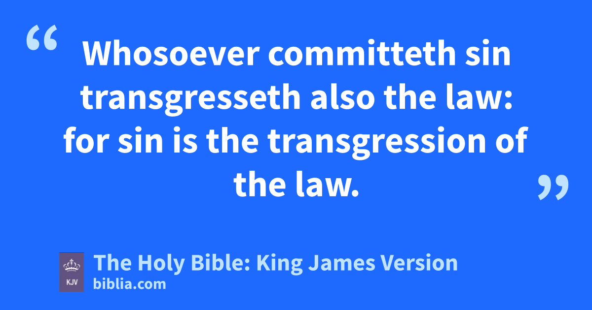 4 Whosoever committeth sin transgresseth also the law: for sin is the transgression of the law. 5 And ye know that he was manifested to take away our sins; and in him is no sin. 6 Whosoever abideth in him sinneth not: whosoever sinneth hath not seen him, neither known him. 7 Little children, let no man deceive you: he that doeth righteousness is righteous, even as he is righteous. 8 He that committeth sin is of the devil; for the devil sinneth from the beginning. For this purpose the Son of God was manifested, that he might destroy the works of the devil. 9 Whosoever is borna of God doth not commit sin; for his seed remaineth in him: and he cannot sin, because he is born of God. 10 In this the children of God are manifest, and the children of the devil: whosoever doeth not righteousness is not of God, neither he that loveth not his brother.