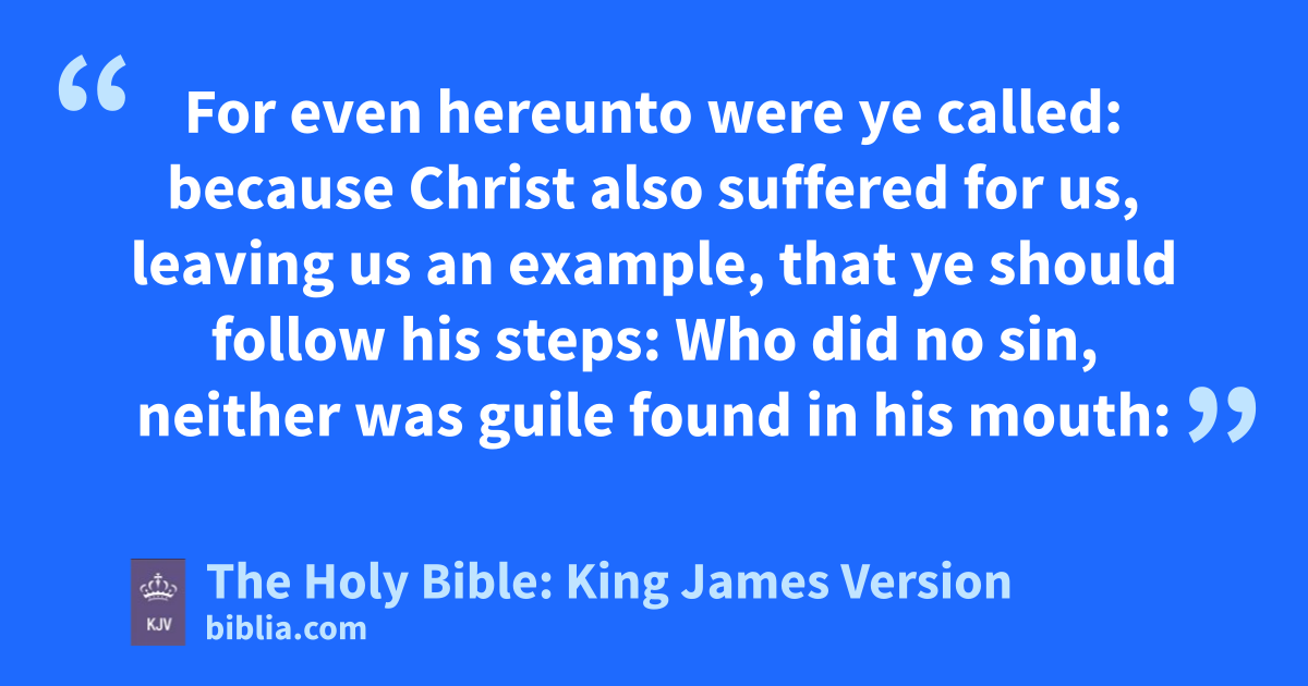 13 † Submit yourselves to every ordinance of man for the Lord’s sake: whether it be to the king, as supreme; 14 Or unto governors, as unto them that are sent by him for the punishment of evildoers, and for the praise of them that do well. 15 For so is the will of God, that with well doing ye may put to silence the ignorance of foolish men: 16 As free, and not usingd your liberty for a cloke of maliciousness, but as the servants of God. 17 Honour alle men. Love the brotherhood. Fear God. Honour the king. 18 Servants, be subject to your masters with all fear; not only to the good and gentle, but also to the froward. 19 For this is thankworthyf, if a man for conscience toward God endure grief, suffering wrongfully. 20 For what glory is it, if, when ye be buffeted for your faults, ye shall take it patiently? but if, when ye do well, and suffer for it, ye take it patiently, this is acceptableg with God. 21 For even hereunto were ye called: because Christ also suffered for ush, leaving us an example, that ye should follow his steps: 22 Who did no sin, neither was guile found in his mouth: 23 Who, when he was reviled, reviled not again; when he suffered, he threatened not; but committed himself to him that judgeth righteously: 24 Who his own self bare our sins in his own body oni the tree, that we, being dead to sins, should live unto righteousness: by whose stripes ye were healed. 25 For ye were as sheep going astray; but are now returned unto the Shepherd and Bishop of your souls.