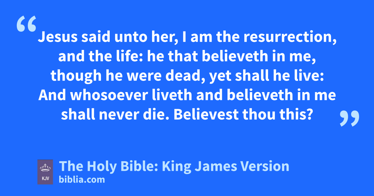 17 Then when Jesus came, he found that he had lain in the grave four days already. 18 Now Bethany was nigh unto Jerusalem, abouta fifteen furlongs off: 19 And many of the Jews came to Martha and Mary, to comfort them concerning their brother. 20 Then Martha, as soon as she heard that Jesus was coming, went and met him: but Mary sat still in the house. 21 Then said Martha unto Jesus, Lord, if thou hadst been here, my brother had not died. 22 But I know, that even now, whatsoever thou wilt ask of God, God will give it thee. 23 Jesus saith unto her, Thy brother shall rise again. 24 Martha saith unto him, I know that he shall rise again in the resurrection at the last day. 25 Jesus said unto her, I am the resurrection, and the life: he that believeth in me, though he were dead, yet shall he live: 26 And whosoever liveth and believeth in me shall never die. Believest thou this? 27 She saith unto him, Yea, Lord: I believe that thou art the Christ, the Son of God, which should come into the world. 28 And when she had so said, she went her way, and called Mary her sister secretly, saying, The Master is come, and calleth for thee. 29 As soon as she heard that, she arose quickly, and came unto him. 30 Now Jesus was not yet come into the town, but was in that place where Martha met him. 31 The Jews then which were with her in the house, and comforted her, when they saw Mary, that she rose up hastily and went out, followed her, saying, She goeth unto the grave to weep there. 32 Then when Mary was come where Jesus was, and saw him, she fell down at his feet, saying unto him, Lord, if thou hadst been here, my brother had not died.