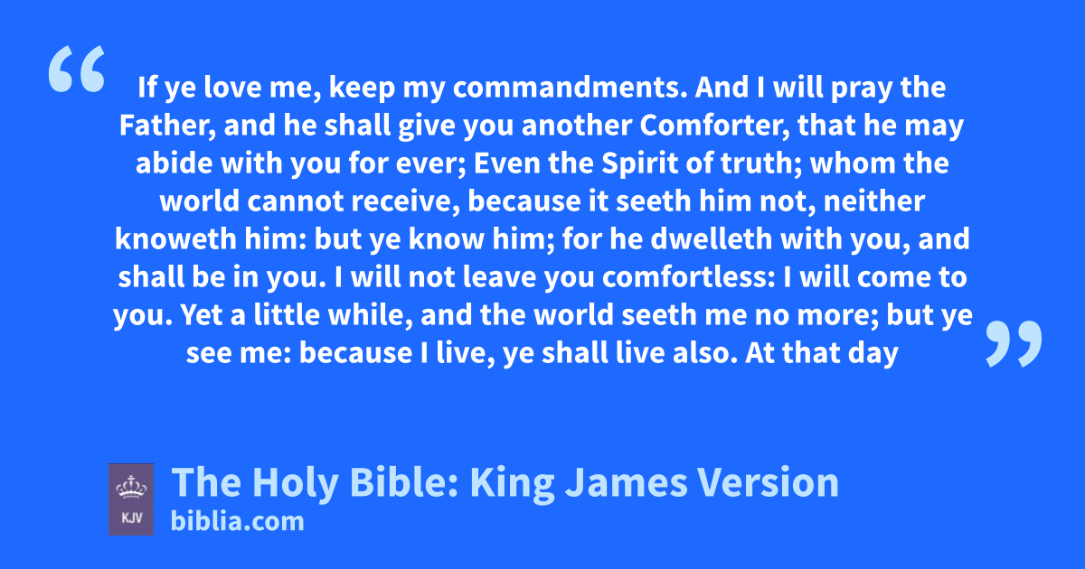 15 If ye love me, keep my commandments. 16 And I will pray the Father, and he shall give you another Comforter, that he may abide with you for ever; 17 Even the Spirit of truth; whom the world cannot receive, because it seeth him not, neither knoweth him: but ye know him; for he dwelleth with you, and shall be in you.