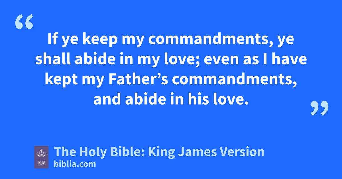 9 As the Father hath loved me, so have I loved you: continue ye in my love. 10 If ye keep my commandments, ye shall abide in my love; even as I have kept my Father’s commandments, and abide in his love. 11 These things have I spoken unto you, that my joy might remain in you, and that your joy might be full. 12 This is my commandment, That ye love one another, as I have loved you. 13 Greater love hath no man than this, that a man lay down his life for his friends. 14 Ye are my friends, if ye do whatsoever I command you. 15 Henceforth I call you not servants; for the servant knoweth not what his lord doeth: but I have called you friends; for all things that I have heard of my Father I have made known unto you. 16 Ye have not chosen me, but I have chosen you, and ordained you, that ye should go and bring forth fruit, and that your fruit should remain: that whatsoever ye shall ask of the Father in my name, he may give it you. 17 These things I command you, that ye love one another.
