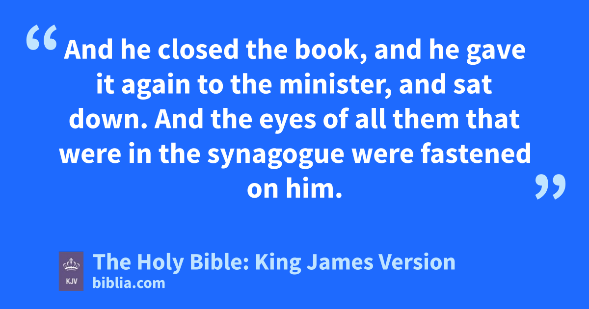 14 And Jesus returned in the power of the Spirit into Galilee: and there went out a fame of him through all the region round about. 15 And he taught in their synagogues, being glorified of all. 16 And he came to Nazareth, where he had been brought up: and, as his custom was, he went into the synagogue on the sabbath day, and stood up for to read. 17 And there was delivered unto him the book of the prophet Esaias. And when he had opened the book, he found the place where it was written, 18 The Spirit of the Lord is upon me, because he hath anointed me to preach the gospel to the poor; he hath sent me to heal the brokenhearted, to preach deliverance to the captives, and recovering of sight to the blind, to set at liberty them that are bruised, 19 To preach the acceptable year of the Lord. 20 And he closed the book, and he gave it again to the minister, and sat down. And the eyes of all them that were in the synagogue were fastened on him. 21 And he began to say unto them, This day is this scripture fulfilled in your ears. 22 And all bare him witness, and wondered at the gracious words which proceeded out of his mouth. And they said, Is not this Joseph’s son? 23 And he said unto them, Ye will surely say unto me this proverb, Physician, heal thyself: whatsoever we have heard done in Capernaum, do also here in thy country. 24 And he said, Verily I say unto you, No prophet is accepted in his own country. 25 But I tell you of a truth, many widows were in Israel in the days of Elias, when the heaven was shut up three years and six months, when great famine was throughout all the land; 26 But unto none of them was Elias sent, save unto Sarepta, a city of Sidon, unto a woman that was a widow. 27 And many lepers were in Israel in the time of Eliseus the prophet; and none of them was cleansed, saving Naaman the Syrian. 28 And all they in the synagogue, when they heard these things, were filled with wrath, 29 And rose up, and thrust him out of the city, and led him unto the browb of the hill whereon their city was built, that they might cast him down headlong. 30 But he passing through the midst of them went his way,