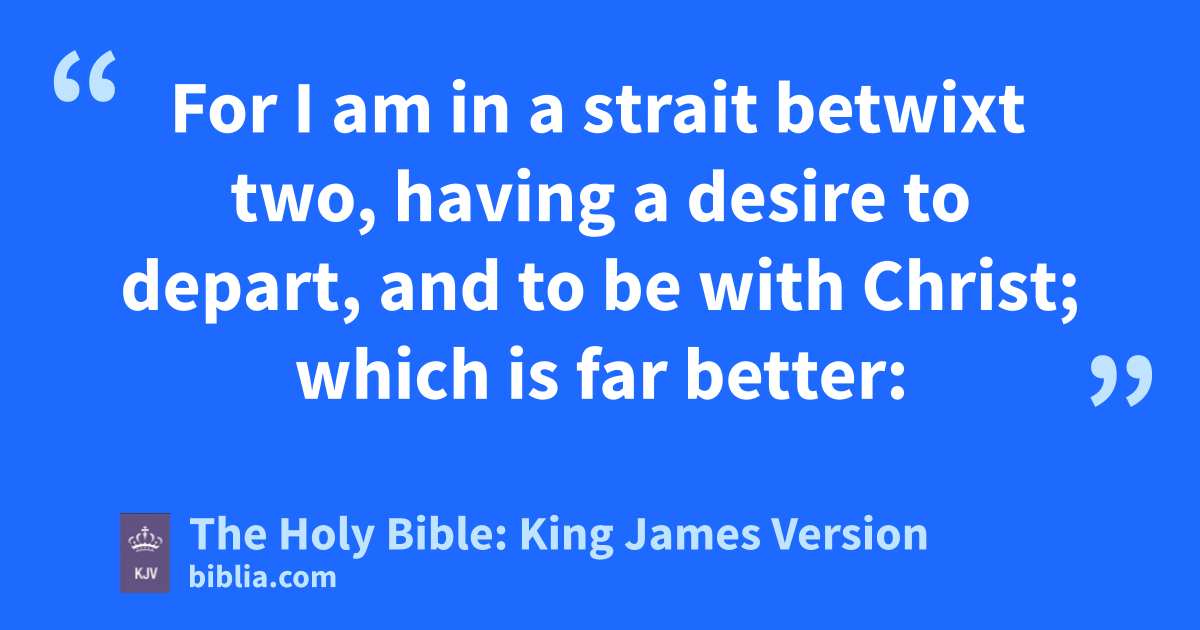 21 For to me to live is Christ, and to die is gain. 22 But if I live in the flesh, this is the fruit of my labour: yet what I shall choose I wot not. 23 For I am in a strait betwixt two, having a desire to depart, and to be with Christ; which is far better: 24 Nevertheless to abide in the flesh is more needful for you. 25 And having this confidence, I know that I shall abide and continue with you all for your furtherance and joy of faith; 26 That your rejoicing may be more abundant in Jesus Christ for me by my coming to you again.