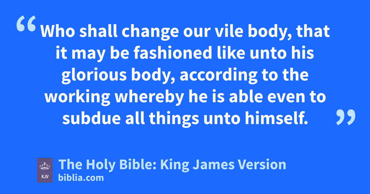 17 Brethren, be followers together of me, and mark them which walk so as ye have us for an ensample. 18 (For many walk, of whom I have told you often, and now tell you even weeping, that they are the enemies of the cross of Christ: 19 Whose end is destruction, whose God is their belly, and whose glory is in their shame, who mind earthly things.) 20 For our conversationa is in heaven; from whence also we look for the Saviour, the Lord Jesus Christ: 21 Who shall change our vile body, that it may be fashioned like unto his glorious body, according to the working whereby he is able even to subdue all things unto himself.