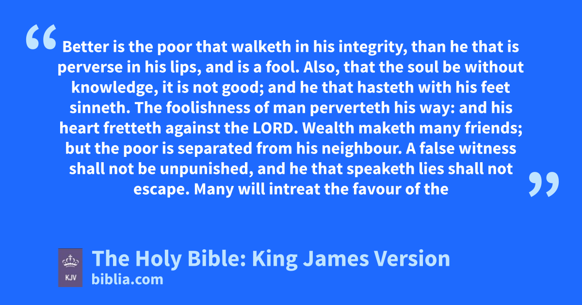 1 Better is the poor that walketh in his integrity, than he that is perverse in his lips, and is a fool.