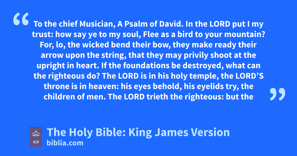 1 In the LORD put I my trust: how say ye to my soul, Flee as a bird to your mountain? 2 For, lo, the wicked bend their bow, they make ready their arrow upon the string, that they may privilya shoot at the upright in heart. 3 If the foundations be destroyed, what can the righteous do?
