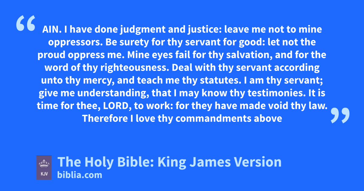 121 AIN. I have done judgment and justice: leave me not to mine oppressors. 122 Be surety for thy servant for good: let not the proud oppress me.