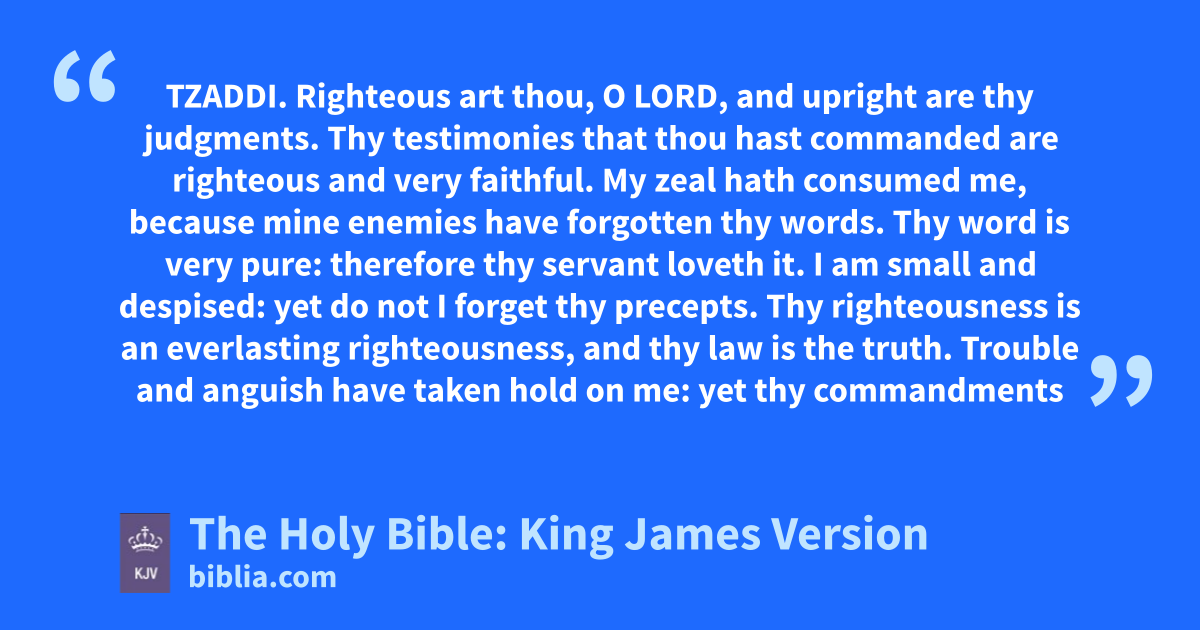 137 TZADDI. Righteous art thou, O LORD, and upright are thy judgments. 138 Thy testimonies that thou hast commanded are righteousn and very faithful.