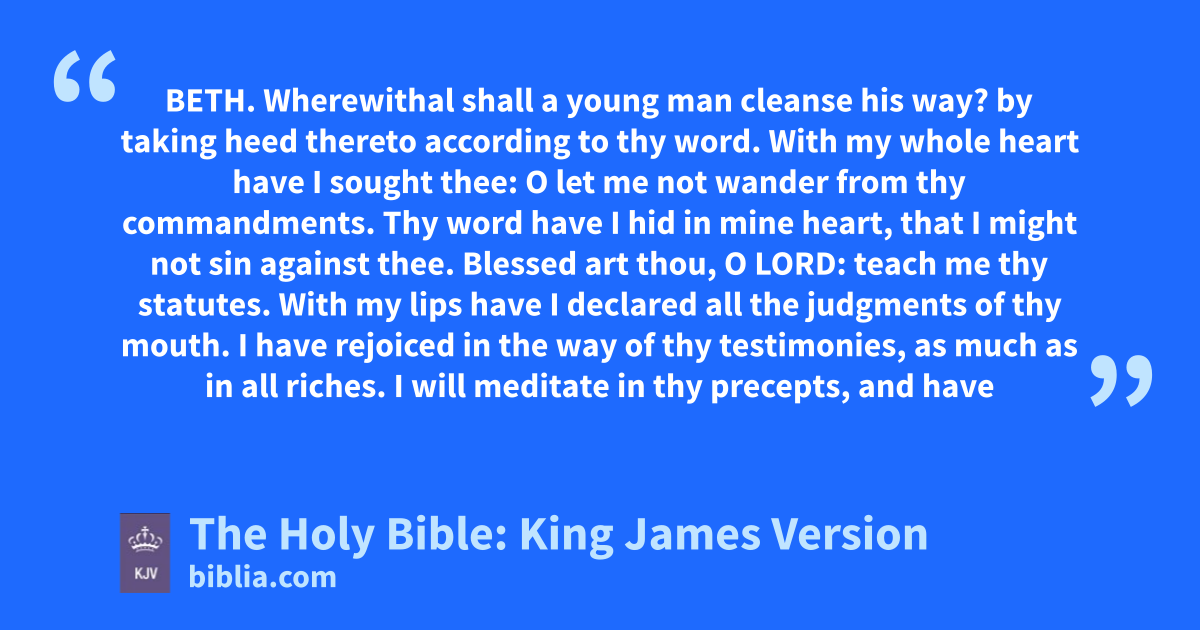 9 BETH. Wherewithal shall a young man cleanse his way? by taking heed thereto according to thy word.