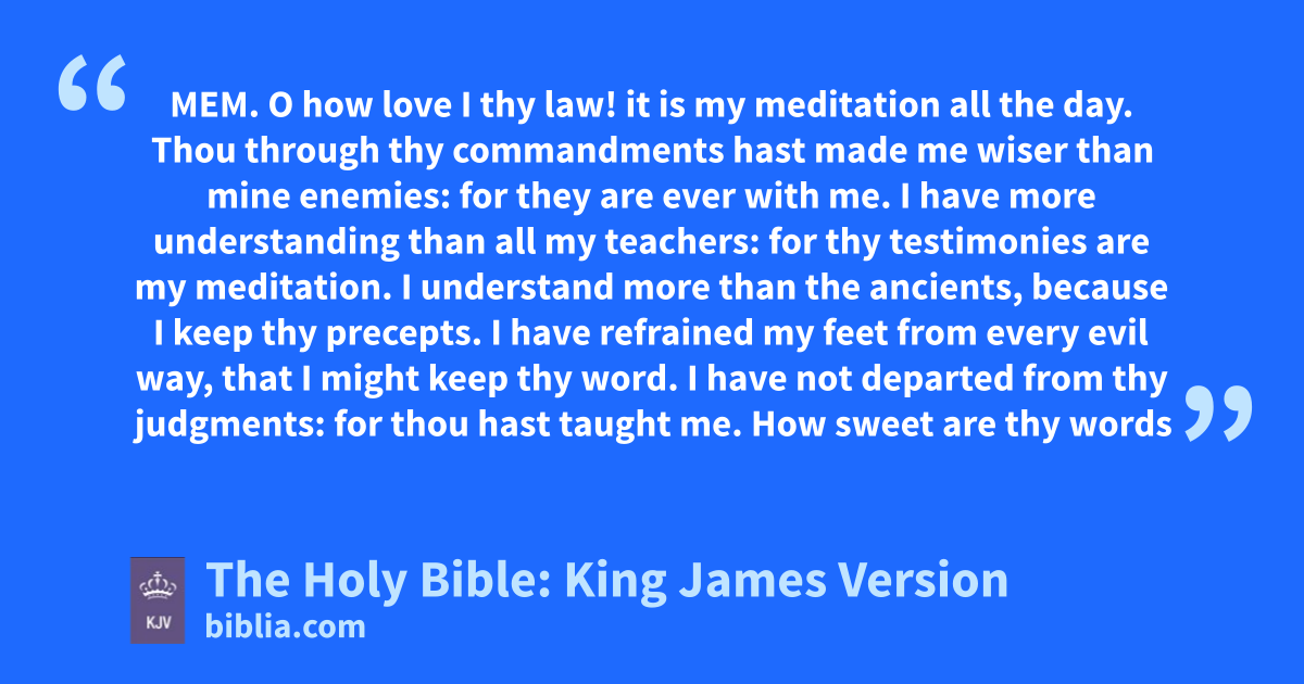 98 Thou through thy commandments hast made me wiser than mine enemies: for they are everj with me. 99 I have more understanding than all my teachers: for thy testimonies are my meditation. 100 I understand more than the ancients, because I keep thy precepts.
