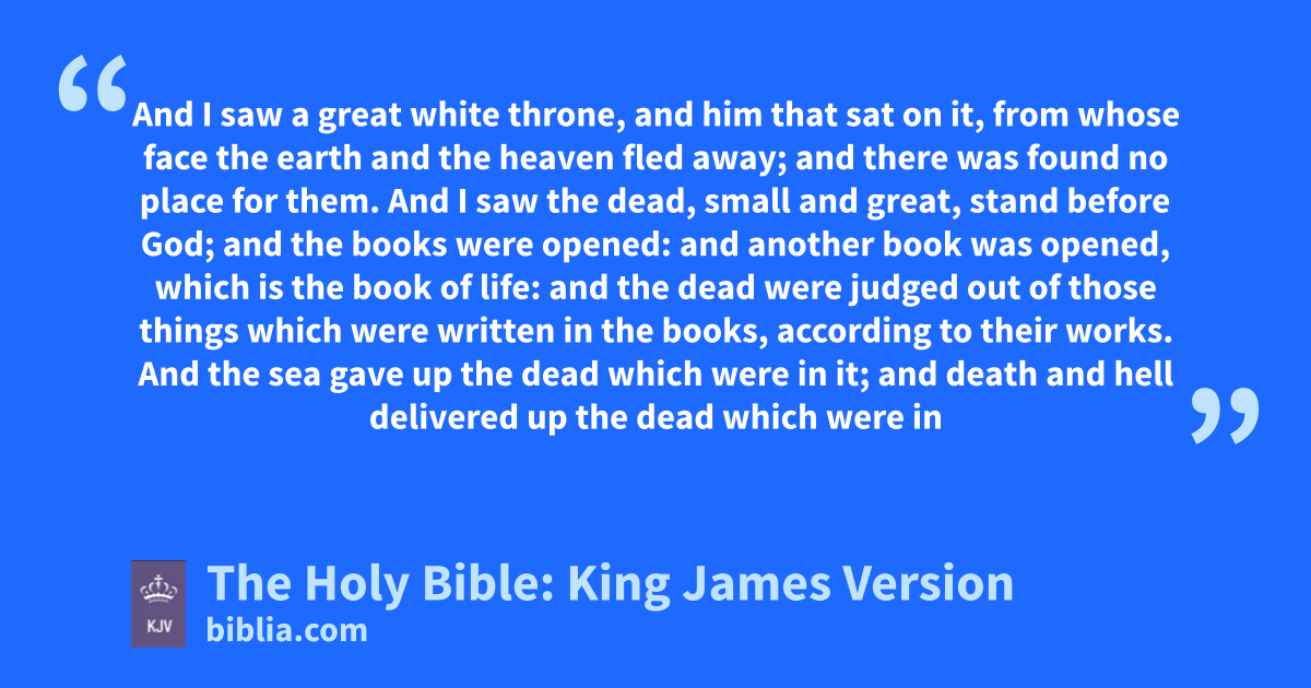 11 And I saw a great white throne, and him that sat on it, from whose face the earth and the heaven fled away; and there was found no place for them. 12 And I saw the dead, small and great, stand before God; and the books were opened: and another book was opened, which is the book of life: and the dead were judged out of those things which were written in the books, according to their works. 13 And the sea gave up the dead which were in it; and death and hella delivered up the dead which were in them: and they were judged every man according to their works. 14 And death and hell were cast into the lake of fire. This is the second death. 15 And whosoever was not found written in the book of life was cast into the lake of fire.
