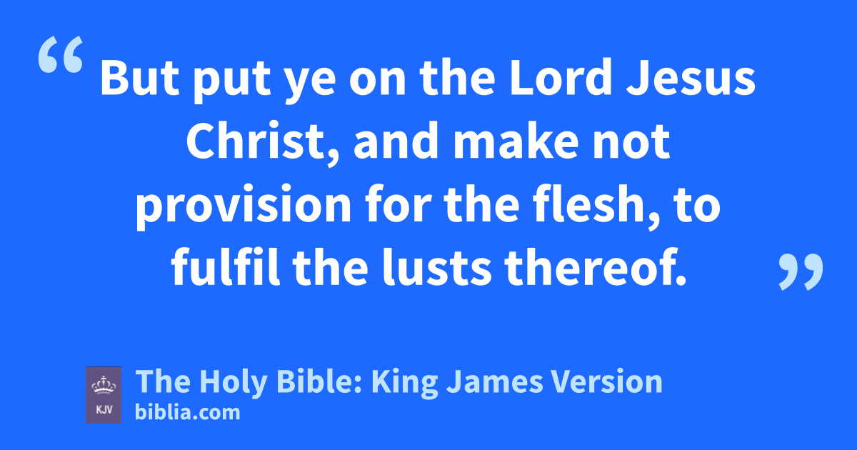 11 And that, knowing the time, that now it is high time to awake out of sleep: for now is our salvation nearer than when we believed. 12 The night is far spent, the day is at hand: let us therefore cast off the works of darkness, and let us put on the armour of light. 13 Let us walk honestlyb, as in the day; not in rioting and drunkenness, not in chambering and wantonness, not in strife and envying. 14 But put ye on the Lord Jesus Christ, and make not provision for the flesh, to fulfil the lusts thereof.