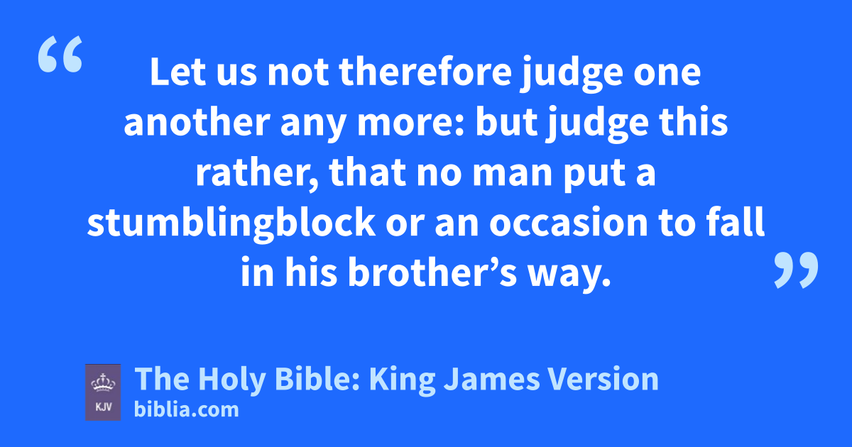 1 Him that is weak in the faith receive ye, but† nota to doubtful disputations. 2 For one believeth that he may eat all things: another, who is weak, eateth herbs. 3 Let not him that eateth despise him that eateth not; and let not him which eateth not judge him that eateth: for God hath received him. 4 Who art thou that judgest another man’s servant? to his own master he standeth or falleth. Yea, he shall be holden up: for God is able to make him stand. 5 One man esteemeth one day above another: another esteemeth every day alike. Let every man be fully persuadedb in his own mind. 6 He that regardethc the day, regardeth it unto the Lord; and he that regardeth not the day, to the Lord he doth not regard it. He that eateth, eateth to the Lord, for he giveth God thanks; and he that eateth not, to the Lord he eateth not, and giveth God thanks. 7 For none of us liveth to himself, and no man dieth to himself. 8 For whether we live, we live unto the Lord; and whether we die, we die unto the Lord: whether we live therefore, or die, we are the Lord’s. 9 For to this end Christ both died, and rose, and revived, that he might be Lord both of the dead and living. 10 But why dost thou judge thy brother? or why dost thou set at nought thy brother? for we shall all stand before the judgment seat of Christ. 11 For it is written, As I live, saith the Lord, every knee shall bow to me, and every tongue shall confess to God. 12 So then every one of us shall give account of himself to God. 13 Let us not therefore judge one another any more: but judge this rather, that no man put a stumblingblock or an occasion to fall in his brother’s way. 14 I know, and am persuaded by the Lord Jesus, that there is nothing uncleand of itself: but to him that esteemeth any thing to be unclean, to him it is unclean. 15 But if thy brother be grieved with thy meat, now walkest thou not charitablye. Destroy not him with thy meat, for whom Christ died. 16 Let not then your good be evil spoken of: 17 For the kingdom of God is not meat and drink; but righteousness, and peace, and joy in the Holy Ghost. 18 For he that in these things serveth Christ is acceptable to God, and approved of men. 19 Let us therefore follow after the things which make for peace, and things wherewith one may edify another. 20 For meat destroy not the work of God. All things indeed are pure; but it is evil for that man who eateth with offence. 21 It is good neither to eat flesh, nor to drink wine, nor any thing whereby thy brother stumbleth, or is offended, or is made weak. 22 Hast thou faith? have it to thyself before God. Happy is he that condemneth not himself in that thing which he alloweth. 23 And he that doubtethf is damned if he eat, because he eateth not of faith: for whatsoever is not of faith is sin.