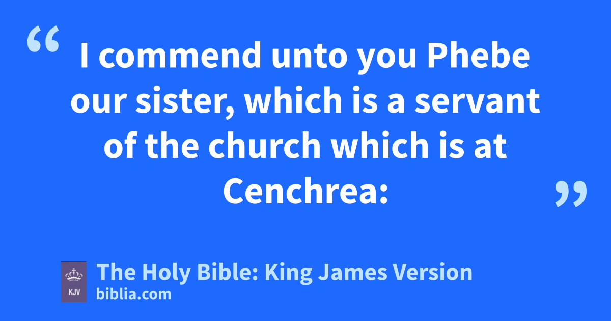 1 † I commend unto you Phebe our sister, which is a servant of the church which is at Cenchrea: 2 That ye receive her in the Lord, as becometh saints, and that ye assist her in whatsoever business she hath need of you: for she hath been a succourer of many, and of myself also. 3 Greet Priscilla and Aquila my helpers in Christ Jesus: 4 Who have for my life laid down their own necks: unto whom not only I give thanks, but also all the churches of the Gentiles. 5 Likewise greet the church that is in their house. Salute my wellbeloved Epaenetus, who is the firstfruits of Achaia unto Christ. 6 Greet Mary, who bestowed much labour on us. 7 Salute Andronicus and Junia, my kinsmen, and my fellowprisoners, who are of note among the apostles, who also were in Christ before me. 8 Greet Amplias my beloved in the Lord. 9 Salute Urbane, our helper in Christ, and Stachys my beloved. 10 Salute Apelles approved in Christ. Salute them which are of Aristobulus’ household. 11 Salute Herodion my kinsman. Greet them that be of the household of Narcissus, which are in the Lord. 12 Salute Tryphena and Tryphosa, who labour in the Lord. Salute the beloved Persis, which laboured much in the Lord. 13 Salute Rufus chosen in the Lord, and his mother and mine. 14 Salute Asyncritus, Phlegon, Hermas, Patrobas, Hermes, and the brethren which are with them. 15 Salute Philologus, and Julia, Nereus, and his sister, and Olympas, and all the saints which are with them. 16 Salute one another with an holy kiss. The churches of Christ salute you.
