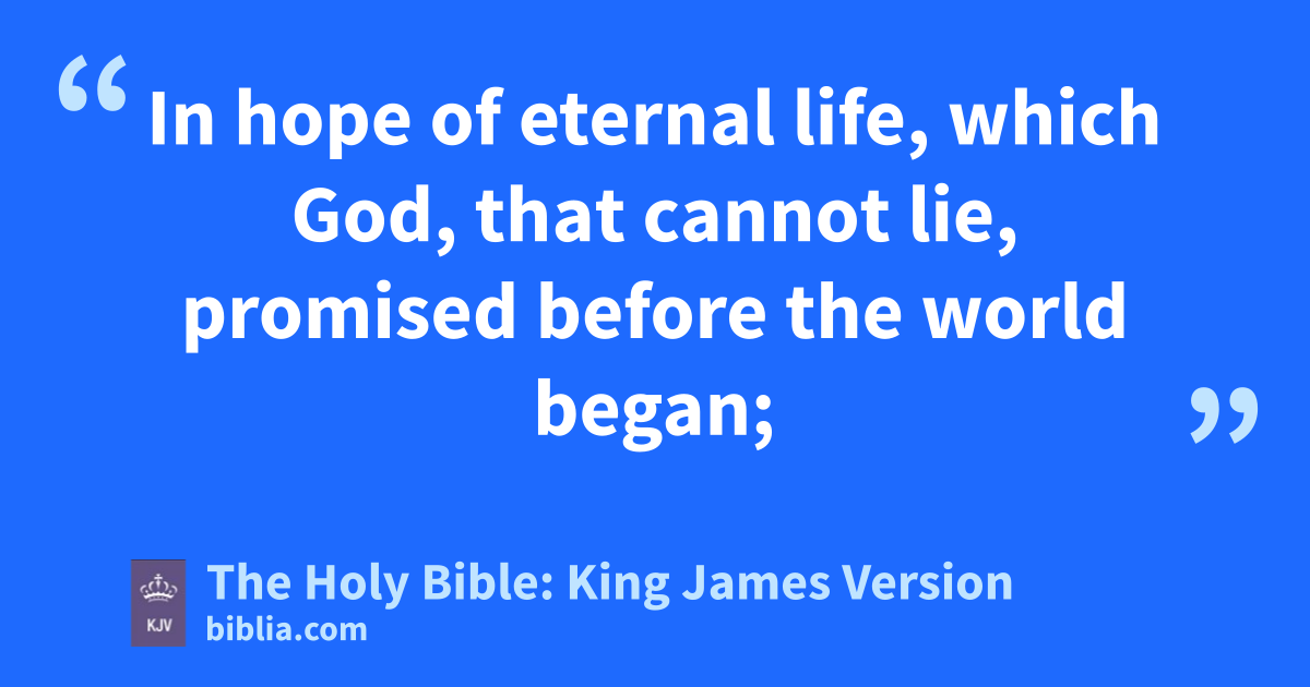 1 Paul, a servant of God, and an apostle of Jesus Christ, according to the faith of God’s elect, and the acknowledging of the truth which is after godliness; 2 Ina hope of eternal life, which God, that cannot lie, promised before the world began; 3 But hath in due times manifested his word through preaching, which is committed unto me according to the commandment of God our Saviour; 4 To Titus, mine own son after the common faith: Grace, mercy, and peace, from God the Father and the Lord Jesus Christ our Saviour.