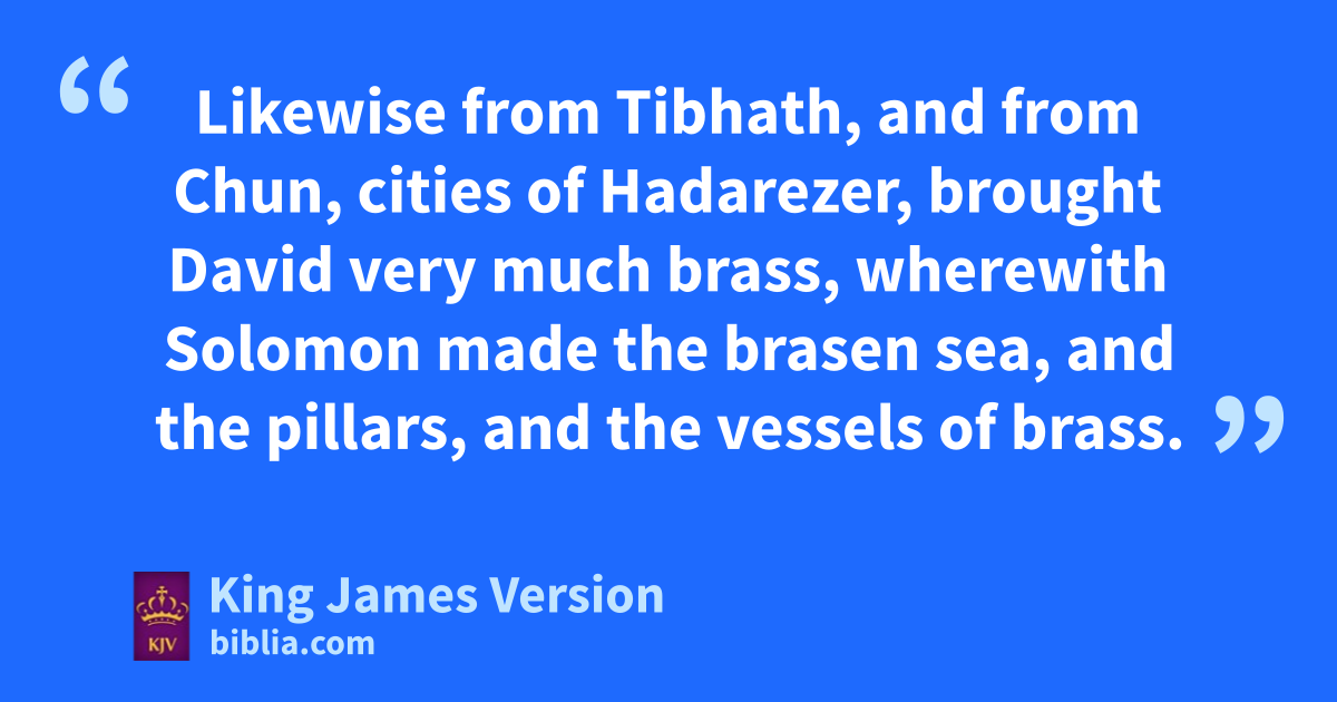 18 *Now aafter this it came to pass, that David smote the Philistines, and subdued them, and took bGath and her ctowns out of the hand of the Philistines. 2 And he smote Moab; and the Moabites became David’s servants, and brought gifts. 3 And David smote ||Hadarezer king of Zobah unto dHamath, as he went to stablish his dominion by the river Euphrates. 4 And David took from him a thousand chariots, and ||seven thousand horsemen, and twenty thousand footmen: David also houghed all the chariot horses, but reserved of them an hundred chariots. 5 And when the Syrians of †Damascus came to help Hadarezer king of Zobah, David slew of the Syrians two and twenty thousand men. 6 Then David put egarrisons in Syria-damascus; and the Syrians became David’s servants, and brought gifts. Thus the Lord preserved David whithersoever he went. 7 And David took the shields of gold that were on the servants of Hadarezer, and brought them to Jerusalem. 8 Likewise from ||Tibhath, and from Chun, cities of Hadarezer, brought David very much brass, wherewith fSolomon made the brasen sea, and the pillars, and the vessels of brass. 9 Now when ||Tou king of dHamath heard how David had smitten all the host of Hadarezer king of Zobah; 10 ||He sent Hadoram his son to king David, ||to inquire of his welfare, and †to congratulate him, because he had fought against Hadarezer, and smitten him; (for Hadarezer †had war with Tou;) and gwith him all manner of vessels of gold and silver and brass. 11 Them also king David dedicated unto the Lord, with the silver and the gold that he brought from all these nations; from Edom, and from Moab, and from the children of Ammon, and from the Philistines, and from Amalek. 12 Moreover †Abishai the son of Zeruiah slew of the Edomites in the valley of salt eighteen thousand. 13 And he put garrisons in Edom; and all the Edomites became David’s servants. Thus the Lord preserved David whithersoever he went.