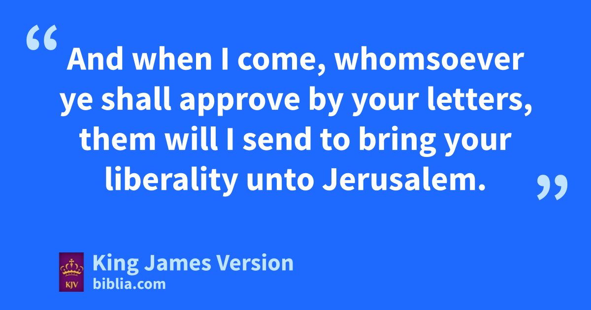 16 Now concerning athe collection for bthe saints, as cI have given order to dthe churches of eGalatia, even so do ye. 2 Upon fthe first day of the week let every one of you lay by him in store, gas God hath hprospered him, ithat there be no gatherings when I come. 3 And when I come, jwhomsoever ye shall kapprove by your letters, them will I send to bring your †liberality unto Jerusalem. 4 And if it be meet that I go also, they shall go with me. 5 Now I will come unto you, lwhen I shall pass through mMacedonia: for nI do pass through Macedonia. 6 And oit may be that I will abide, yea, and winter with you, that ye may pbring me on my journey whithersoever I go. 7 For I will not see you qnow by the way; but I trust to tarry a while with you, rif the Lord permit. 8 But I will tarry at sEphesus until tPentecost. 9 For ua great door and effectual is opened unto me, and vthere are many adversaries. 10 Now wif xTimotheus come, see that he may be with you without fear: for yhe worketh zthe work of the Lord, as I also do. 11 aLet no man therefore despise him: but pconduct him forth bin peace, that he may come unto me: for I look for him with the brethren. 12 As touching cour brother Apollos, I greatly desired him to come unto you with the brethren: but his will was not at all to come at this time; but he will come when he shall have convenient time. 13 dWatch ye, estand fast in the faith, fquit you like men, fgbe strong. 14 hLet all your things be done with charity.