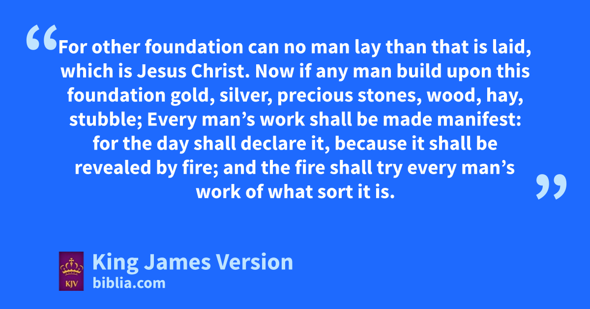 5 Who then is Paul, and who is jApollos, but kministers by whom lye believed, meven as the Lord gave to every man? 6 nI have planted, joApollos watered; pbut God gave the increase. 7 So then qneither is he that planteth any thing, neither he that watereth; but God that giveth the increase. 8 Now he that planteth and he that watereth are one: rand every man shall receive his own reward according to his own labour. 9 For swe are labourers together with God: ye are God’s ||husbandry, ye are tGod’s building. 10 uAccording to the grace of God which is given unto me, as a wise masterbuilder, xI have laid the foundation, and another buildeth thereon. But let every man take heed how he buildeth thereupon. 11 For yother foundation can no man lay than that is laid, zwhich is Jesus Christ. 12 Now if any man build upon this foundation gold, silver, precious stones, wood, hay, stubble; 13 aEvery man’s work shall be made manifest: for bthe day cshall declare it, because dit †shall be revealed eby fire; and ethe fire shall ftry every man’s work of what sort it is. 14 If any man’s work abide which he hath built thereupon, ahe shall receive a reward. 15 If any man’s work shall be burned, ghe shall suffer loss: but he himself shall be saved; yet so as ehby fire. 16 iKnow ye not that ye are the temple of God, and that jthe Spirit of God dwelleth in you? 17 If any man ||defile the temple of God, him shall God destroy; for the temple of God is holy, which temple ye are. 18 kLet no man deceive himself. lIf any man among you seemeth to be wise in mthis world, let him become a fool, that he may be wise. 19 For nthe wisdom of this world is foolishness with God. For it is written, oHe taketh the wise in their own pcraftiness. 20 And again, qThe Lord knoweth the thoughts of the wise, that they are vain. 21 Therefore rlet no man glory sin men. For tall things are yours; 22 Whether Paul, or uApollos, or uCephas, or the world, or life, or death, or xthings present, or things to come; all are yours; 23 And yye are Christ’s; and zChrist is God’s.