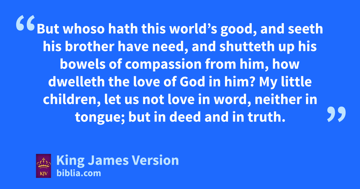 3 Behold, awhat manner of love the Father hath bestowed upon us, that bwe should be called cthe sons of God: therefore the world knoweth us not, because dit knew him not. 2 Beloved, enow are we cthe sons of God, and fit doth not yet appear what we shall be: but gwe know that, hwhen he shall appear, iwe shall be like him; for kwe shall lsee him as he is. 3 And every man mthat hath this hope in him npurifieth himself, oeven as he is pure. 4 Whosoever committeth sin transgresseth also the law: for psin is the transgression of the law. 5 And ye know that qrhe was manifested rsto take away our sins; and tin him is no sin. 6 Whosoever abideth in him sinneth not: whosoever sinneth uhath not seen him, vneither known him. 7 Little children, wlet no man deceive you: xhe that doeth righteousness is righteous, oeven as he is righteous. 8 yHe that committeth sin is of the devil; for zthe devil sinneth from the beginning. For this purpose the Son of God was manifested, athat he might bdestroy the works of the devil. 9 cWhosoever is born of God doth not commit sin; for dhis seed remaineth in him: and he cannot sin, because ehe is born of God. 10 In this fthe children of God are manifest, and gthe children of the devil: hwhosoever doeth not righteousness is not of God, neither ihe that loveth not his brother. 11 For kthis is the ||message lthat ye heard from the beginning, mthat we should love one another. 12 Not as nCain, who was of othat wicked one, and slew his brother. And wherefore slew he him? pBecause his own works were evil, and his brother’s righteous. 13 Marvel not, my brethren, if qthe world hate you. 14 rWe know that swe have passed from death unto life, because we love the brethren. He that loveth not his brother abideth in death. 15 tWhosoever hateth his brother is ua murderer: and ye know that vno murderer hath eternal life abiding in him. 16 wxHereby perceive we the love of God, because xhe laid down his life for us: and ywe ought to lay down our lives for the brethren. 17 But zwhoso hath this world’s agood, and seeth his brother have need, and bshutteth up chis bowels of compassion from him, dhow dwelleth the love of God in him? 18 My little children, elet us not love in word, neither in tongue; but in deed and eein truth. 19 And hereby we know that we are fof the truth, and gshall †assure our hearts before him. 20 For hif our heart condemn us, God is greater than our heart, and knoweth all things. 21 Beloved, iif our heart condemn us not, then jhave we confidence ktoward God. 22 And lwhatsoever we ask, we receive of him, because we mkeep his commandments, and do nthose things that are pleasing in his sight. 23 And this is his commandment, oThat we should believe on the name of his Son Jesus Christ, and plove one another, qas he gave us commandment. 24 And he that mkeepeth his commandments rdwelleth in him, and rshe in him. And thereby we know that he abideth in us, by the Spirit which he hath given us.