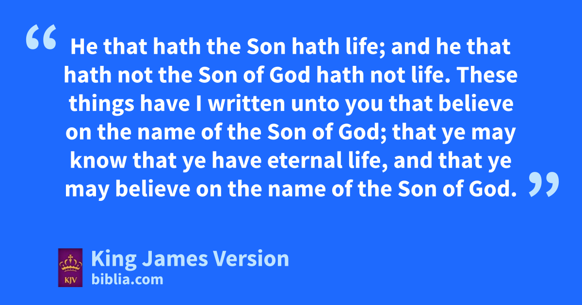 13 yThese things have I written unto you that believe on the name of the Son of God; that ye may know that ye have ueternal life, and that ye may zbelieve on the name of the Son of God. 14 And this is the aconfidence that we have ||in him, that, bif we ask any thing caccording to his will, he heareth us: 15 And if we know that he hear us, whatsoever we ask, dwe know that bwe have the petitions that we desired of him. 16 If any man see his brother sin a sin which is not unto death, he shall ask, and ehe shall give him life for them that sin not unto death. fThere is a sin unto death: gI do not say that he shall pray for it. 17 All hunrighteousness is sin: and there is a sin not unto death. 18 We know that iwhosoever is born of God sinneth not; but he that is begotten of God kkeepeth himself, and lthat wicked one toucheth him not. 19 And we know that we are of God, and mthe whole world lieth in lwickedness. 20 And we know that the Son of God is come, and nhath given us an understanding, that we may know ohim that is true, and we are in ohim that is true, even in his Son Jesus Christ. pThis is othe true God, and qeternal life. 21 Little children, rkeep yourselves from idols. Amen.
