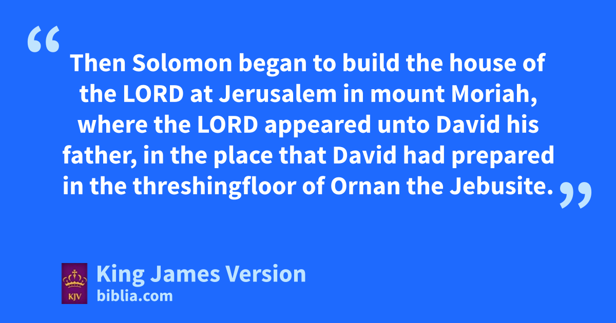 3 *Then aSolomon began to build the house of the Lord at Jerusalem in mount bMoriah, ||where the Lord appeared unto David his father, in the place that David had prepared in the threshingfloor of c||Ornan the Jebusite. 2 And he began to build in the second day of the second month, in the fourth year of his reign.