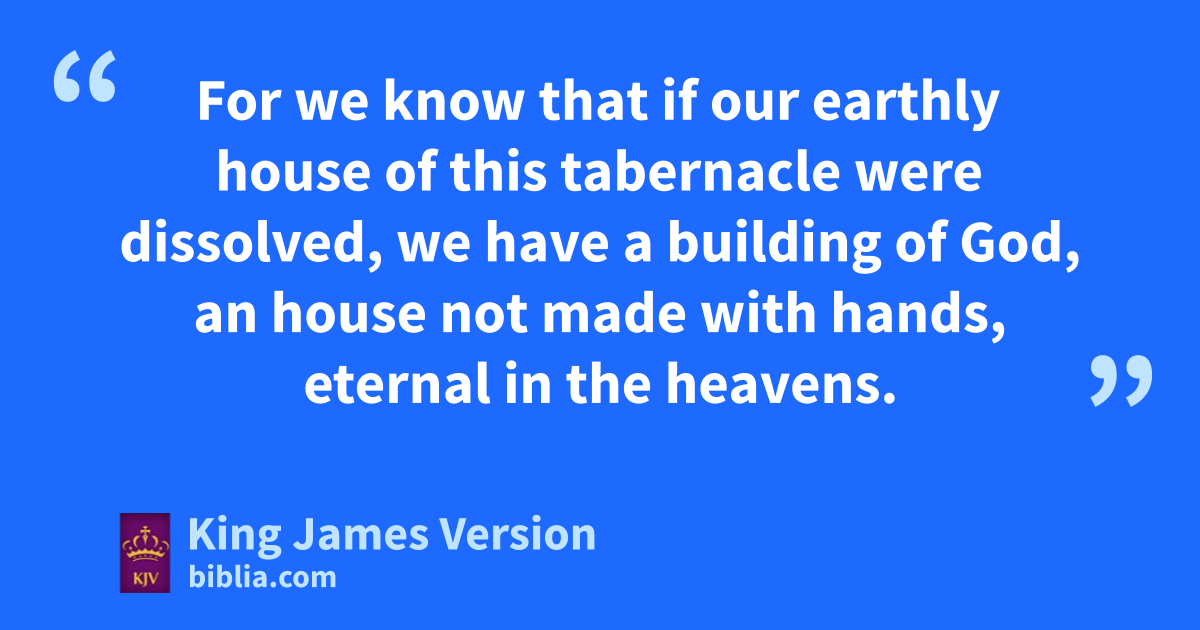 5 For we know that if aour earthly house of bthis tabernacle were dissolved, we have a building of God, an house cnot made with hands, eternal in the heavens. 2 For in this dwe groan, earnestly desiring to be clothed upon with our house which is from heaven: 3 If so be that ebeing clothed we shall not be found naked. 4 For we that are in bthis tabernacle ddo groan, being burdened: not ffor that gwe would be unclothed, gbut hclothed upon, that mortality might be hswallowed up of life. 5 Now ihe that hath wrought us for the selfsame thing is God, who also hath kgiven unto us the earnest of the Spirit. 6 Therefore we are always confident, knowing that, whilst we are at home in the body, we are absent from the Lord: 7 (For lwe walk by faith, mnot by sight:) 8 nWe are confident, I say, and owilling rather to be absent from the body, and to be present with the Lord.